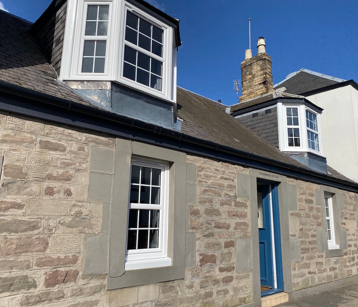 Built in the early 19th century this traditional fishermans' cottage is located on the waterfront in the vibrant town of Broughty Ferry. Only a stones throw from the Castle & the award winning sandy beach. This beautifully appointed cosy cottage boasts 3 bedrooms each with super king size zip & link beds (can be separated into singles if requested when booking). A comfortable lounge/kitchen & dining area, 2 stunning bathrooms and a secluded courtyard makes this the perfect holiday retreat.