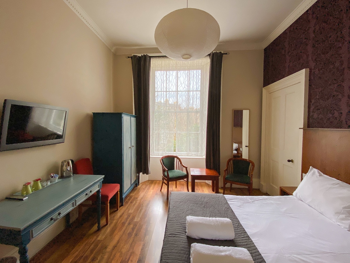 A perfect haven to stay to enjoy Edinburgh and all its attractions! Close to the city centre yet quiet enough for a good night's sleep! The room is lovely, bright & spacious with twin beds, or super king size bed (for couples). It has been newly refurbished and enjoys a bijou en-suite shower room. Easy access to the city centre either on foot or bus. There are 2 regular & frequent bus services - you'll love it! Wonderful views of Arthur's Seat & Blackford Hill Royal Observatory.