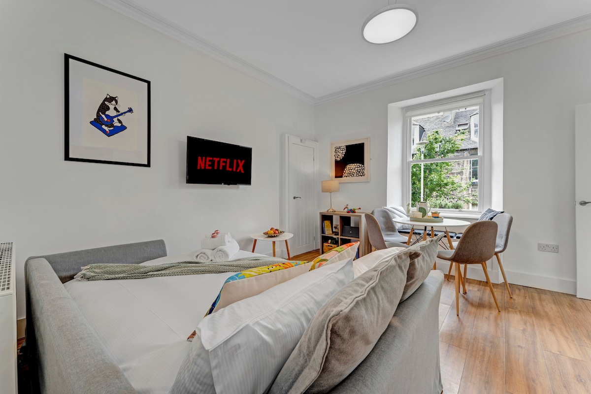 Nestled in the prestigious Murrayfield area this beautiful Victorian villa offers the perfect blend of classic charm and modern comfort. With your own private entrance, 2 spacious bedrooms, a luxurious bathroom, inviting sitting room with a sofa bed you will have lots of space but no kitchen is available. Guests have access to a front garden and a private driveway for a car. Located close to Murrayfield Stadium and public transport minutes away this is an idyllic base to enjoy Edinburgh.