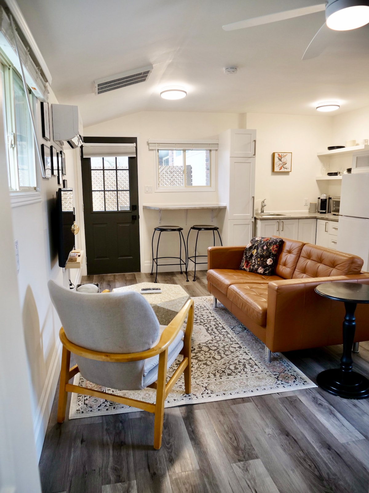 Escape to our inviting private apartment, where relaxation comes naturally. This charming space features a separate entrance and offers a cozy unit that combines both a comfortable bedroom and a cozy living area seamlessly. While there are no physical barriers between these areas, it creates an open and airy atmosphere. You'll find a fully equipped kitchen, allowing you to whip up your favorite meals, and a complete washroom to freshen up after a day of adventures!
