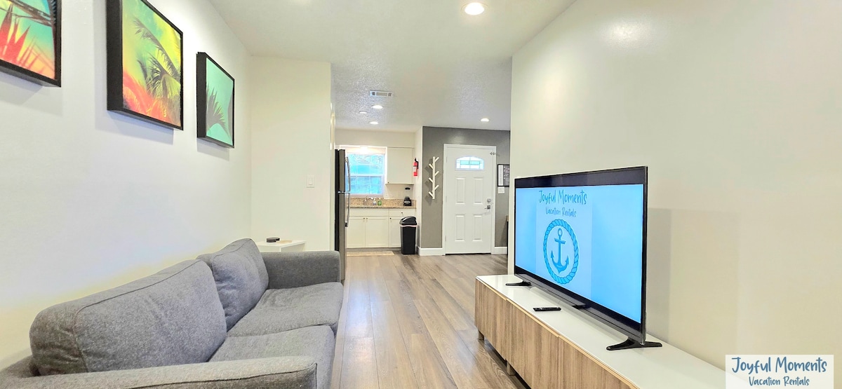 Looking for a stylish and centrally located place to stay while visiting St Pete and Gulfport? Here it is! This 2 bed, 1 bath has king & queen memory foam mattresses, 55-inch TV, fast WIFI, washer/dryer, tankless water heater, and a fully fenced-in yard. Minutes to world famous beaches, downtown St Pete, and Beach Blvd all while being tucked away in a peaceful neighborhood oasis. Plus, only a short drive to local hot spots like Tropicana Field, Dali Museum, Sunken Gardens, & Stetson University.