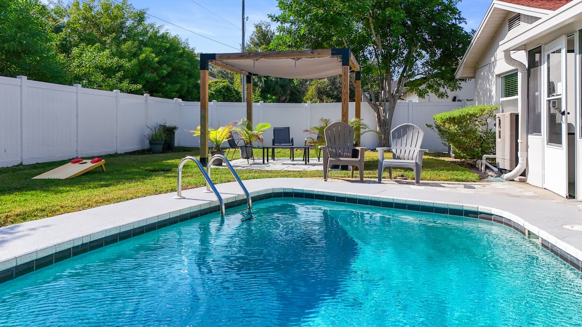 Bring the family to this unique property. Bikes rentals close by, free parking, outdoor grill, beach supplies, smart TVs, backyard lounge area, outdoor Jenga, hosts that go above and beyond to make sure you LOVE your stay. Walking distance to charming downtown Dunedin with plenty of shops/bars/breweries/restaurants/playgrounds. Walk two blocks to the ocean and watch the sunset over the gulf.