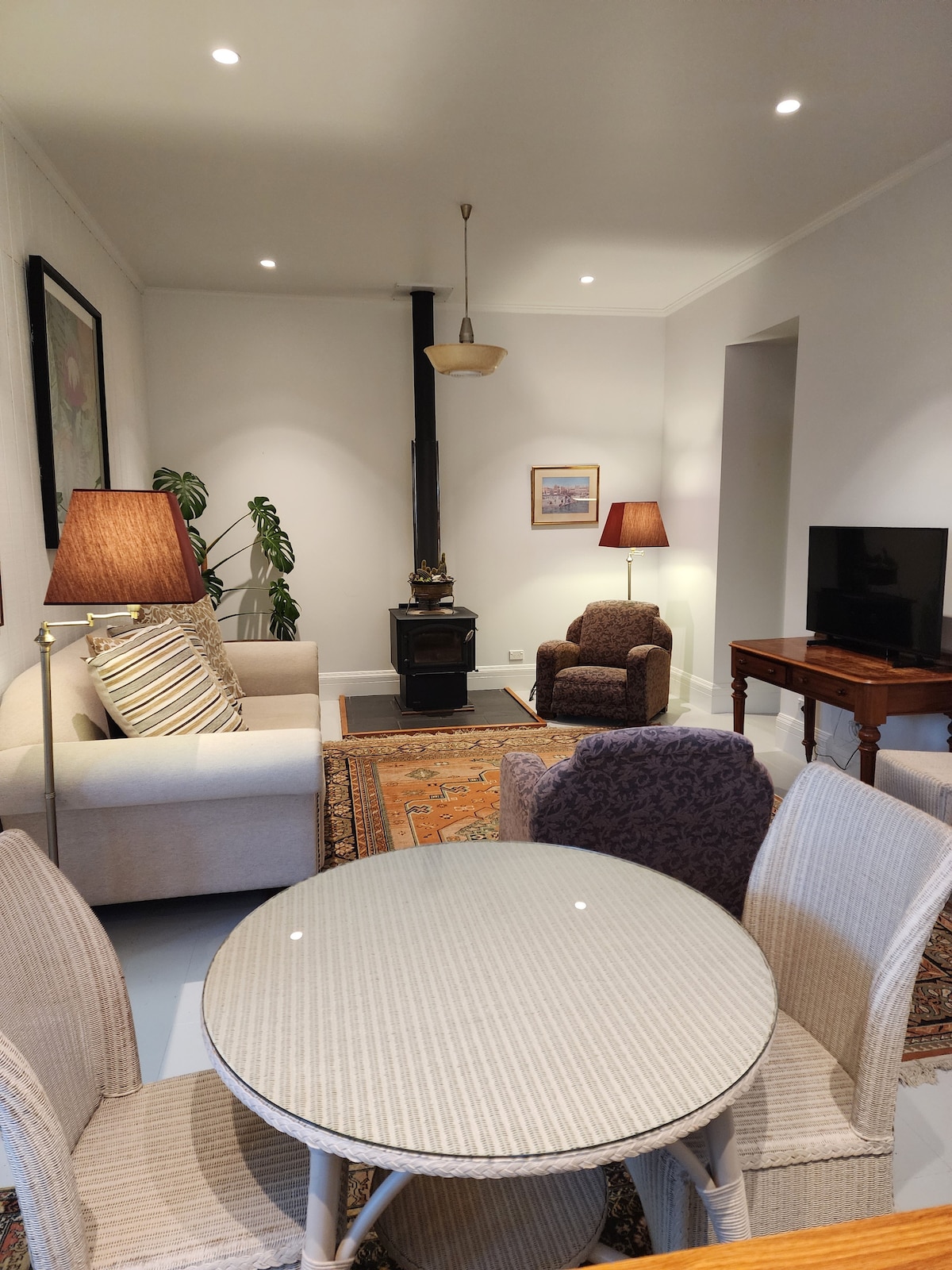 This studio room features a queen bed, an en-suite bathroom with under-floor heating, and a kitchen (please see house rules for restrictions) along with a high standard of comfort provided by double-glazed windows and doors, full insulation and a heatpump to keep you comfortable during the colder part of the year. There is an adjacent studio very similar in set-up with a queen and a single bed. Off-street car parking is available right outside the space.