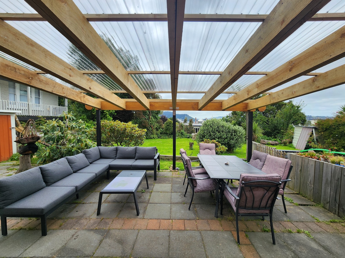 Relax with the whole family at this peaceful place to stay. Views across the Taieri Plains to to the Maungatua mountains. This house is ideal for multiple couples for Dunedin events or wedding groups attending the nearby wedding venues, ideal spot for all your pre wedding photos. Relax and unwind in the spa.