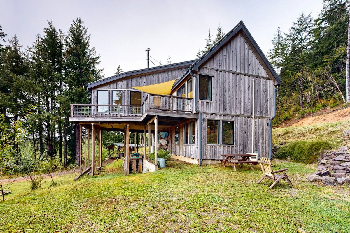Relax and renew in our private coastal guest suite with its own entrance. Enjoy a large sunlit bedroom, spacious bathroom with double vanity, sitting room with desk, and outdoor patio. Watch deer nibble blackberries outside your picture windows. Just minutes from beaches, dunes, lakes, and the charming town of Florence— The stars don't get brighter or the days more peaceful than at this quiet, secluded spot. Your peaceful retreat awaits.