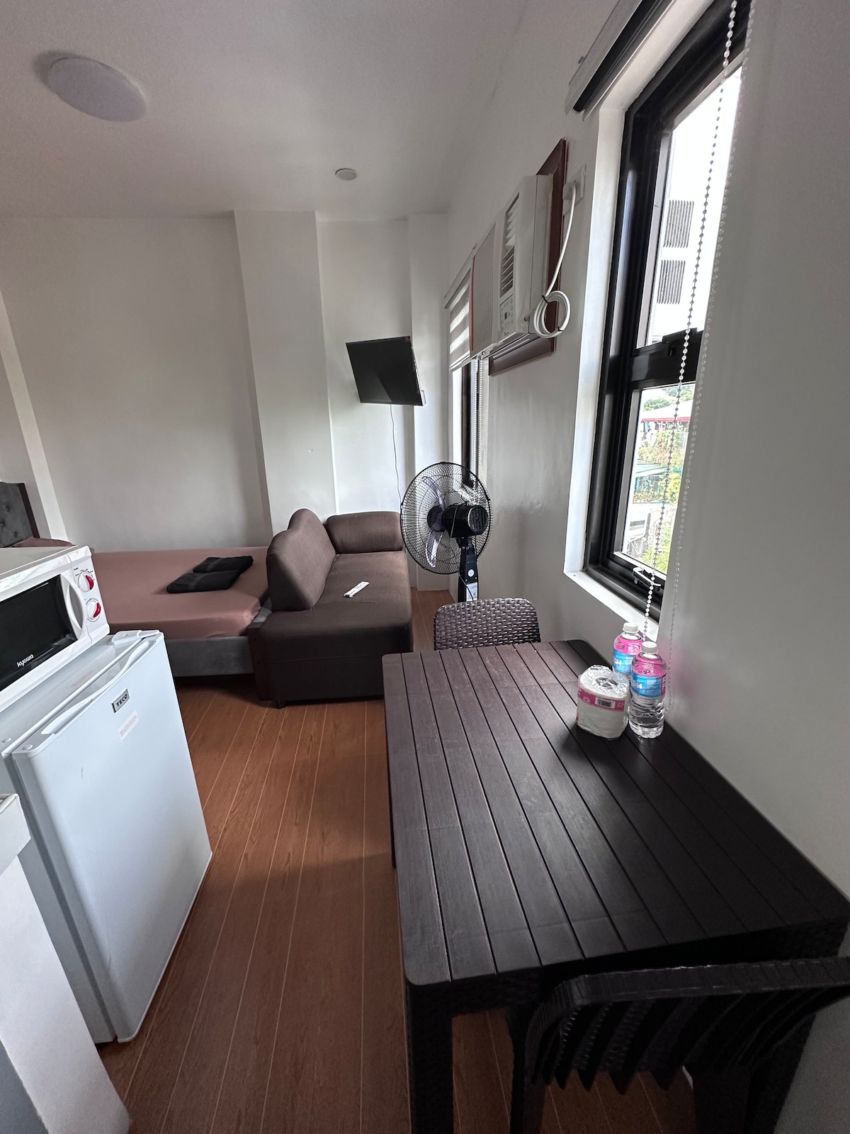 A 28-sqm bright, compact studio with a well-equipped kitchen, WiFi, smart TV, free street parking in a quiet, hilltop neighborhood amid trees. -On 3rd floor of walk-up apt building (32 steps up) -walking distance to mini mart, chapel, laundromat, pool -Driving distances: -Beaches: All Hands-5mins & Camayan-15mins -Nearby restos: Acea-3mins & Rali’s-8mins -Ocean Adv / Zoobic: 12-15mins -Royal Duty Free / Pure Gold / Starbucks-10-12mins -Airport: 2mins -CBD: 15mins -Self check-in