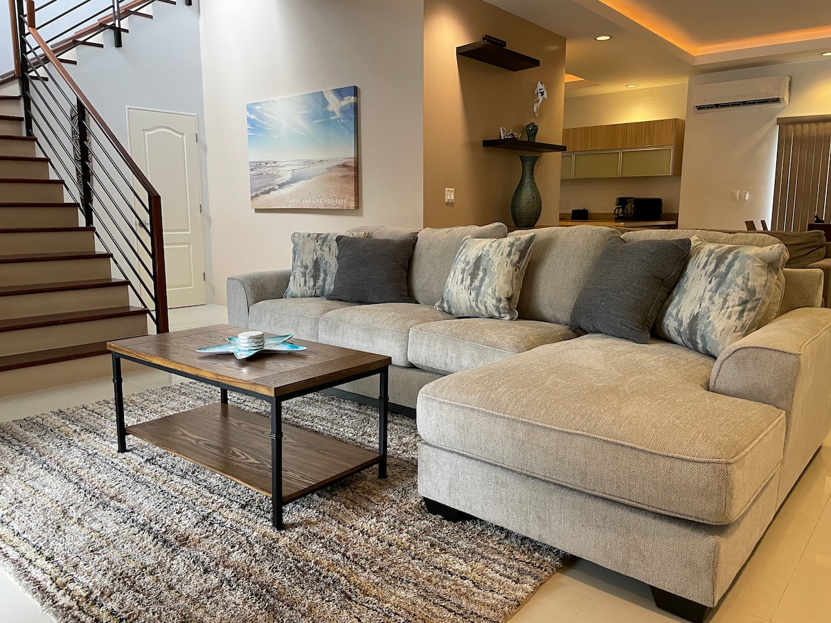 투몬 경찰서 걸어서 3분거리, 투몬 호텔존에 위치한 콘도입니다. 무려 6개월의 기간동안 천장, 벽, 벽내장재, 바닥을 모두 제거하고 저렴한 자재가 아닌 튼튼하고 좋은 자재를 사용하여 전체 레노베이션, 올수리를 마친 숙소. 침대 프레임과 매트리스, 소파, 식탁등 가구는 모두 한국에서 수입, 주방 용품들은 홈디포와 메이시스에서 브랜드 제품으로만 구비했습니다. 세탁기, 건조기는 엘지 제품을 사용합니다. 소파는 의자 하나에 2인이 착석가능한 소파로 10인이 앉을수 있는 대형 소파입니다. 한쪽 벽면을 채우는 대형 빔 프로젝터로 다같이 넷플릭스나 유투브를 감상하며 쉴 수 있습니다. 식탁 또한 8인 최대 10인이 착석가능한 대형 테이블로 온가족이 다같이 둘러앉아 식사를 하실수 있습니다. 저상침대가 있어 아이들과 함께 쉬시기 좋습니다.