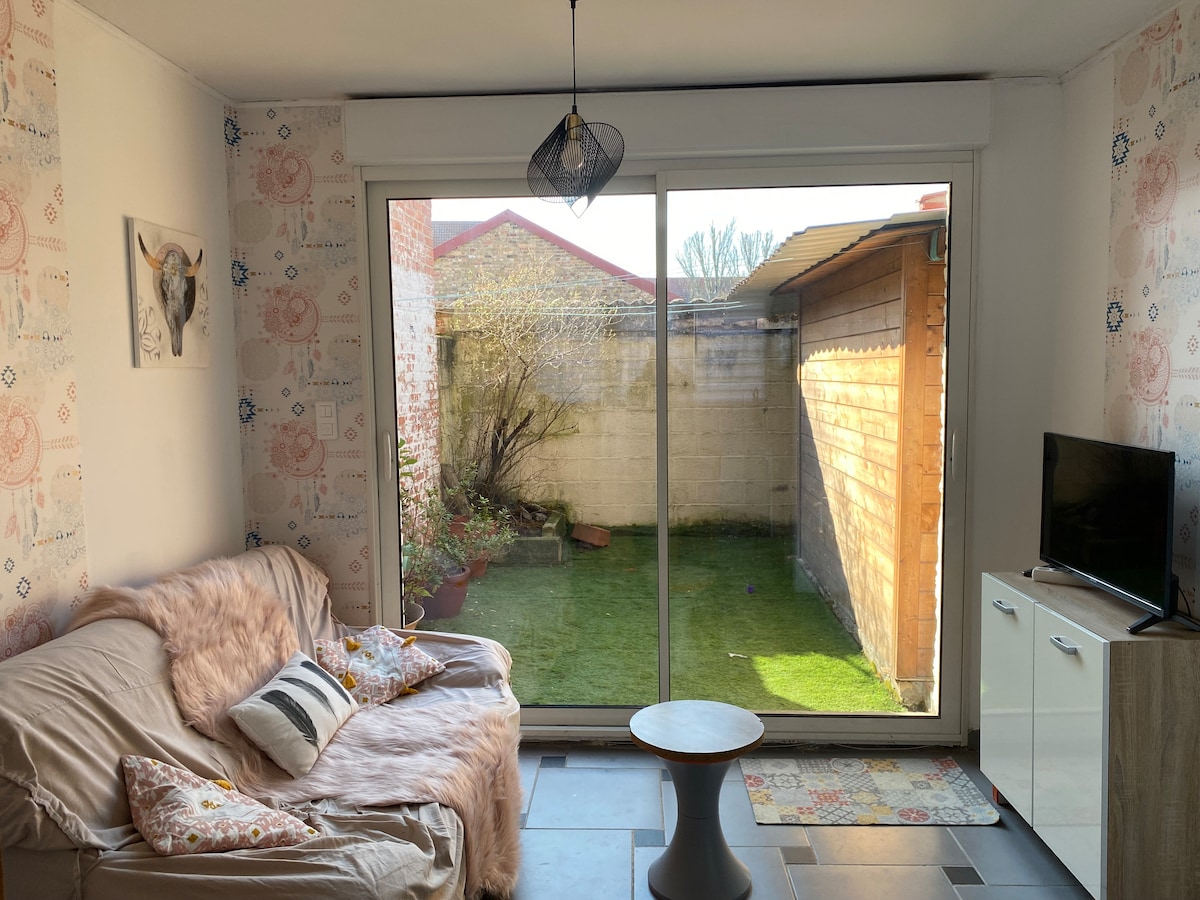 Charmante maisonnette à Dunkerque! Profitez de deux chambres confortables avec des lits de marque EMMA et un canapé convertible. La cuisine est entièrement équipée (machine à laver et sèche-linge). Le salon dispose d'une TV et d'un accès internet. Profitez de la cour plein sud avec salon de jardin et barbecue. La salle de bain est équipée d'une douche et un wc Notre maisonnette est idéalement située dans une impasse calme, proche de la plage, de la place Jean Bart et des commerces.