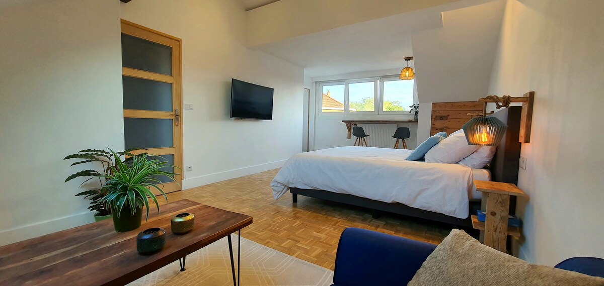 Bienvenue au Studio Le Plumard Bleu. Idéal pour les travailleurs ou les couples, parking rue gratuit, à 3min de l'autoroute, 10min à pied de la gare, bus gratuit à 50m vous emmène à la plage (C3). Quartier calme, parfait pour télétravailler (wifi). Studio lumineux (avec volets) situé dans un bâtiment de la reconstruction entièrement rénové (thermique et fonctionnel) et classé 2 étoiles. Il se distingue par sa conception alliant espaces sur mesures et une décoration élégante et pétillante.