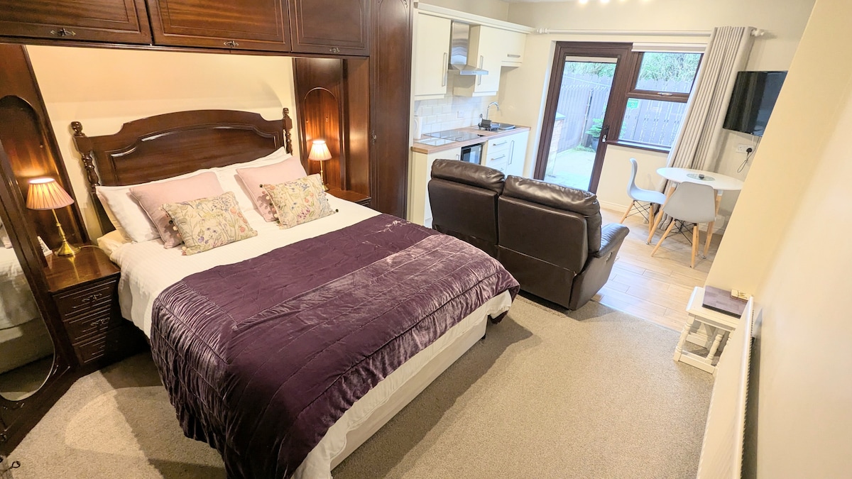 A modern studio apartment which is part of Valley View Country House. Quiet, relaxing, beautiful country location. Get away from it all. Private ground floor access, fully equipped kitchen, self contained unit. King bed, large bathroom, reclining sofa, dining table and chairs, Smart TV, Private parking, outdoor seating. Home from home. Some home baked goodies on arrival. Close to the Giant’s Causeway, Bushmills Distillery, Rope Bridge, Dark Hedges and beautiful beaches and coastal walks.