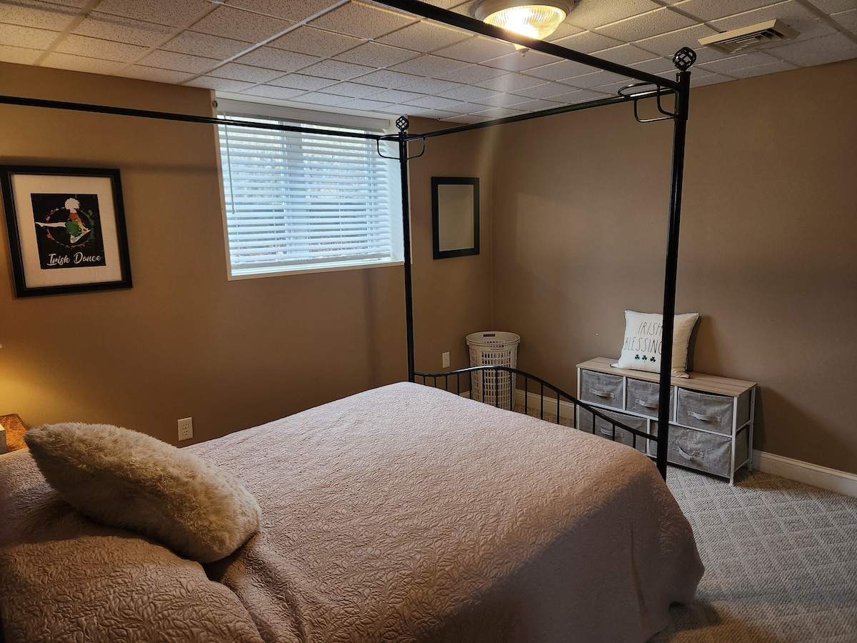 Your home away from home is a spacious & newly renovated basement/in-law apartment (approx 1100 sq feet) located below the main house, with its own private entrance, dedicated parking & in walkable neighborhood. The unit has a bathroom, full kitchen, living room & bedroom w/queen bed & extra tv. Hubbardston is a quaint little town with no stop-lights yet conveniently located to many beautiful hiking trails, fishing spots and lakes. 10 minutes from route 2 and 15 minutes from Mt Wachusetts.