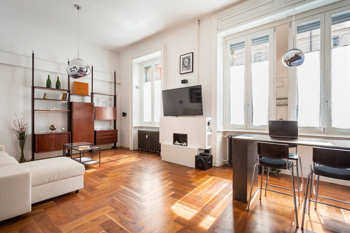 Live in the very center of Milan in our stylish and spacious apartment (80sqm/860sqft) located in a traditional historical Milanese building. The apartment features all comforts such as AC, two bathrooms with showers, washing machine+dryer, a fully-equipped kitchen, a super-fast internet connection and LED TV with Netflix. Just minutes away from Milan's major sites, the apartment is unusually quiete since it's located in the inner part of an historical building (second floor without elevator)