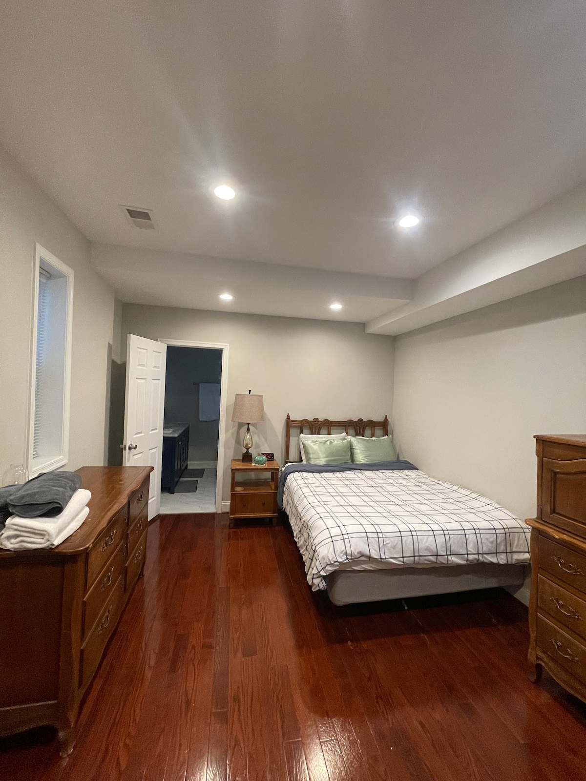 This light, airy one-bedroom English basement apartment has its own private entrance. Cable TV, WiFi, washer/dryer and a full kitchen make it easy to make yourself at home. The bedroom features a queen size bed (and the living room is equipped with a pull-out sofa that converts to a standard size bed). We never charge a cleaning fee! The apartment is located below the main house. It is 500 square feet with a ceiling height of 6’ 9”.