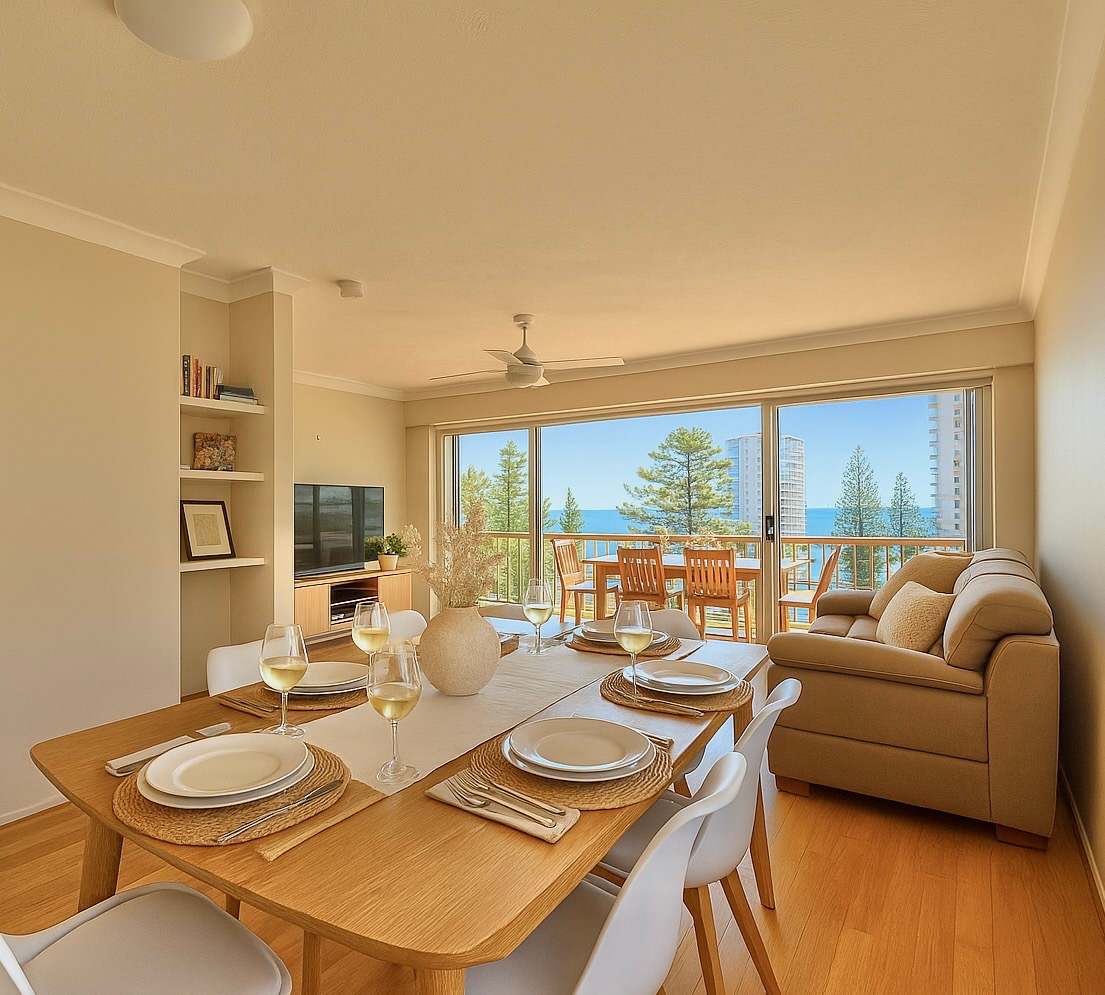 Beachside 2-bedroom apartment in Rainbow Bay, Gold Coast – just 100m from the beach! Walk to Snapper Rocks, Duranbah Beach, Coolangatta shops, restaurants, and cafes. Enjoy ocean glimpses, world-class surf, and easy access to Jack Evans Boat Harbour (5 mins) for fishing, snorkeling, and watersports. No car needed – everything is walking distance, including Tweed River, Greenmount, and markets. Perfect for surfers, couples, and families seeking a cozy coastal getaway.
