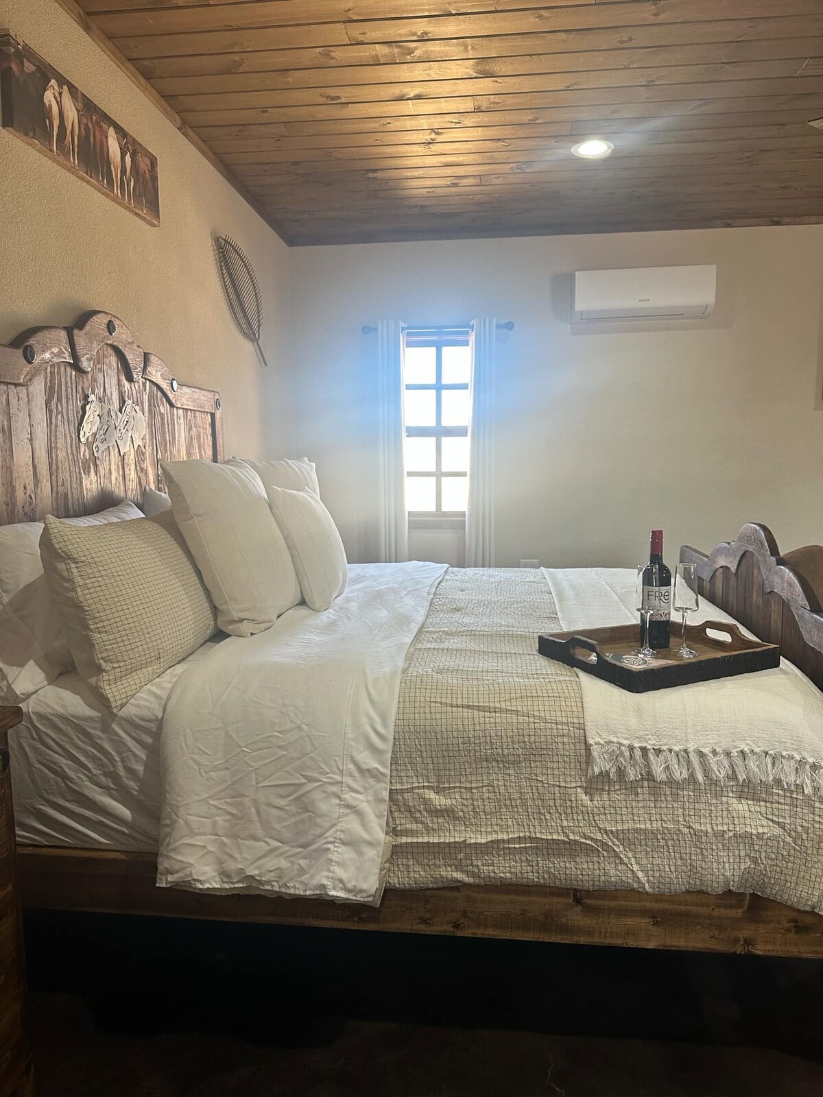 This adorable one bedroom casita features eco-friendly products, classy Deco decorating, and an extra cozy Keetsa king bed. The combination of minimal aesthetics with just the right flashy Deco touch creates a cozy, inviting interior. The Casita is completely private and is heated and cooled by mini-splits in the living room and bedroom. There is secure parking for a sedan style vehicle, but it cannot accommodate larger vehicles like large trucks or SUVs.