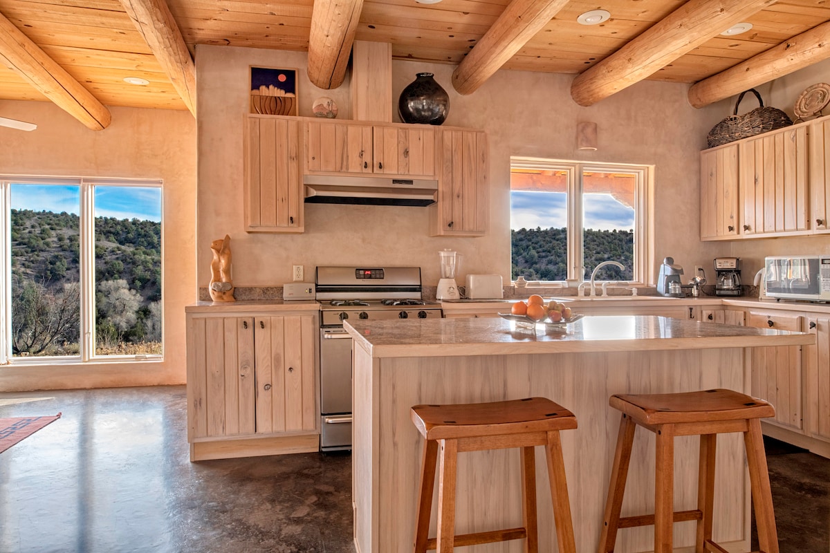 Come and enjoy the peaceful surroundings of this stylish, modern guest house located 20 minutes north of Taos. 1 bedroom with loft, and comfy queen size fold out couch. Open kitchen and living area, porch and outdoor seating allow you to enjoy the beautiful sunsets, and starlit skies. Just out the door you have access to hiking and mountain biking on BLM land or a 10 minute drive to the Rio Grande River. Skiing is just a 30 minute drive to Taos Ski Valley or 45 minutes to Red River.