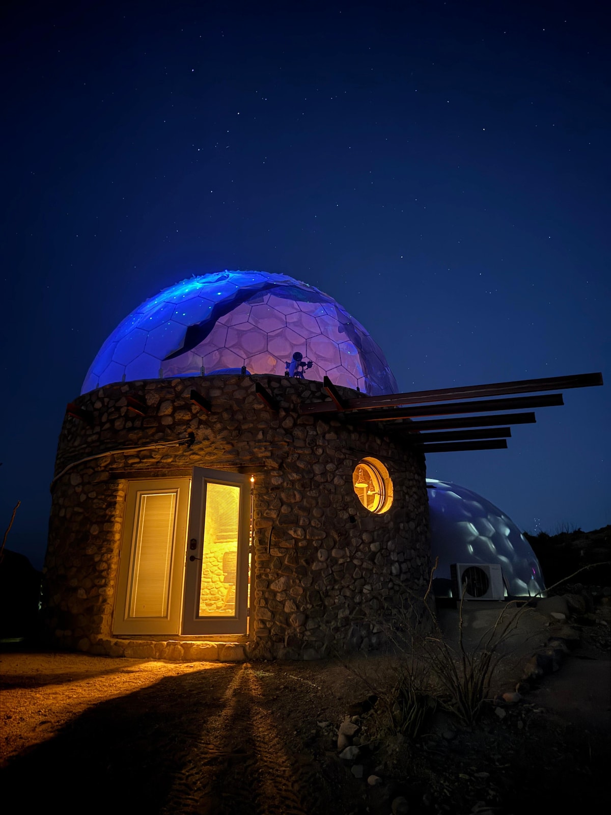 Reconnect with nature at this unforgettable escape. Fall asleep under the Milky Way in the largest dark sky reserve in the WORLD! Wake up to stunning mountain views. Solar-Powered Luxury Glamping Dome with spa-inspired interior bathroom, heating/air conditioning, shaded outdoor kitchen & dining area, touch-on fire pit & chaise lounges with a telescope for stargazing. ~30 Minutes from Big Bend National Park entrance. Enjoy the peace & quiet.