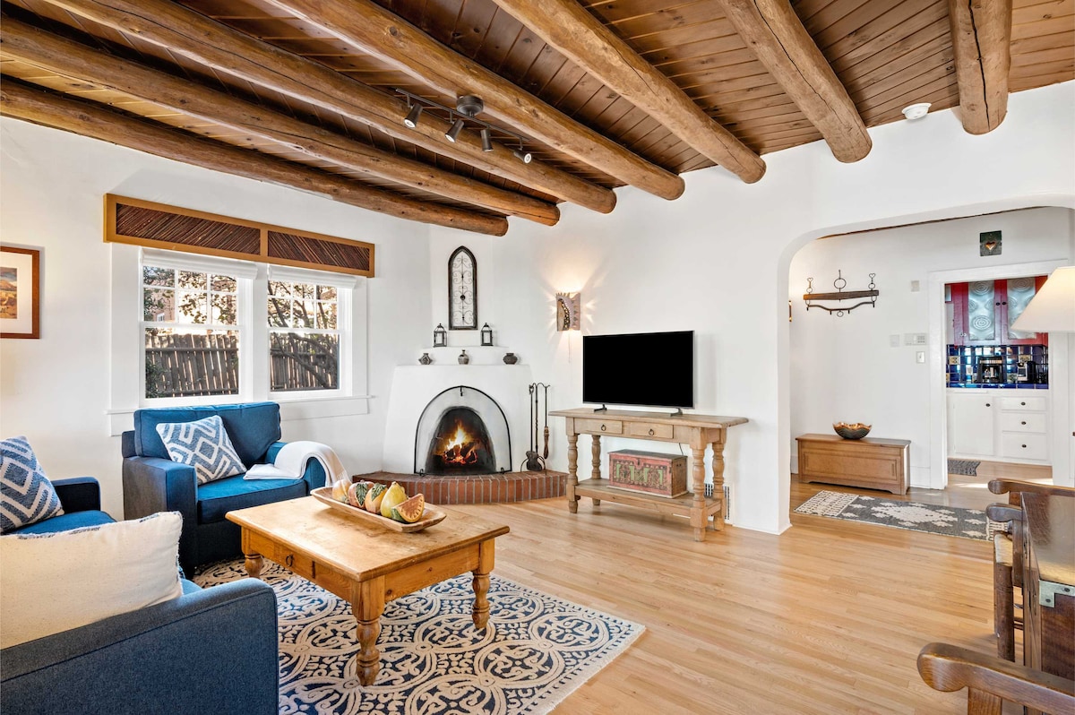 Luxuriate in the heart of Santa Fe's historic Eastside with this beautifully renovated home that is in a country-like setting, yet close to famed Canyon Road and its lovely restaurants, cafés and art galleries. Casa Rina is a historic pueblo style adobe that evokes 1930s Santa Fe, while also providing luxurious, brand new amenities such as a fully stocked gourmet kitchen, radiant heat, A/C, and excellent Wi-Fi. Relax by the kiva fireplace and enjoy the best of Santa Fe!