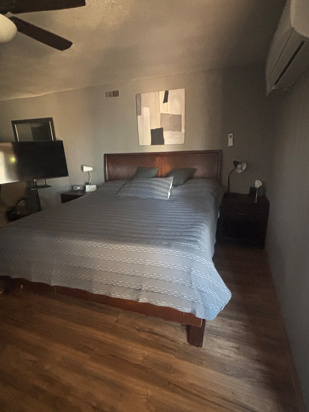 You'll love staying in one of our cities' most interesting neighborhoods. We are are centrally located in a local arts neighborhood, just 1.8 miles from the plaza and not far from Meow Wolf & main museums. If you want to stay in the touristy historic district-- not us. Also, no TV; but stream on 300 MPS wifi. Your super clean, elegant room, full of eclectic art, has a comfy king size bed, full kitchen, fridge, couch, table & private deck-- perfect for catching exquisite sunset views.