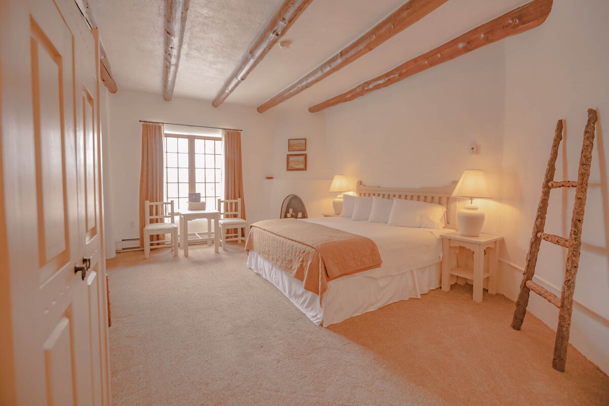 Enjoy 3 acres of peace and quiet just 2 miles from the Kit Carson National forest and 5 minutes from Taos Plaza. This is an historic property close to nature. We aim to provide quiet, calming, and meditative rooms used mainly for sleeping. Please note, there is no on-site staff. There are no indoor common areas, no microwaves, and no TVs in the rooms. The pool area is reserved for Retreat Rentals, but we hope you will enjoy your room, the fire pit, and the grounds.