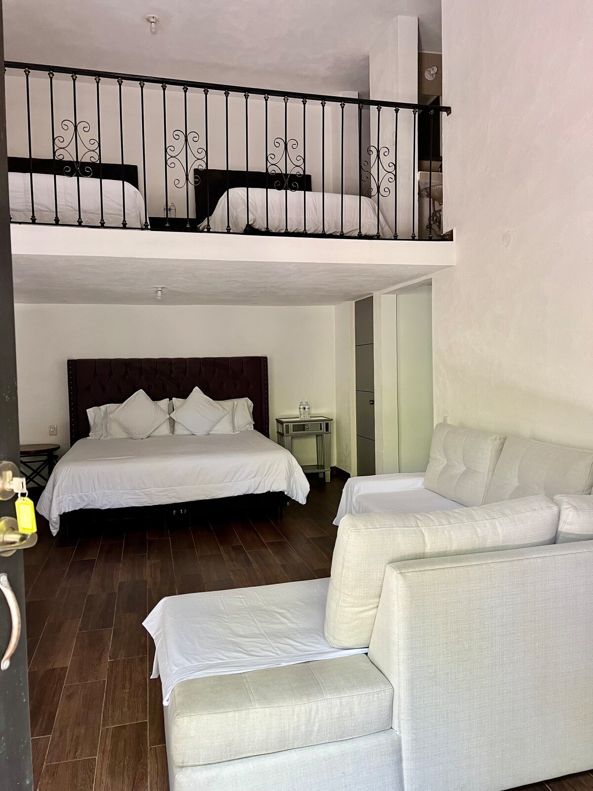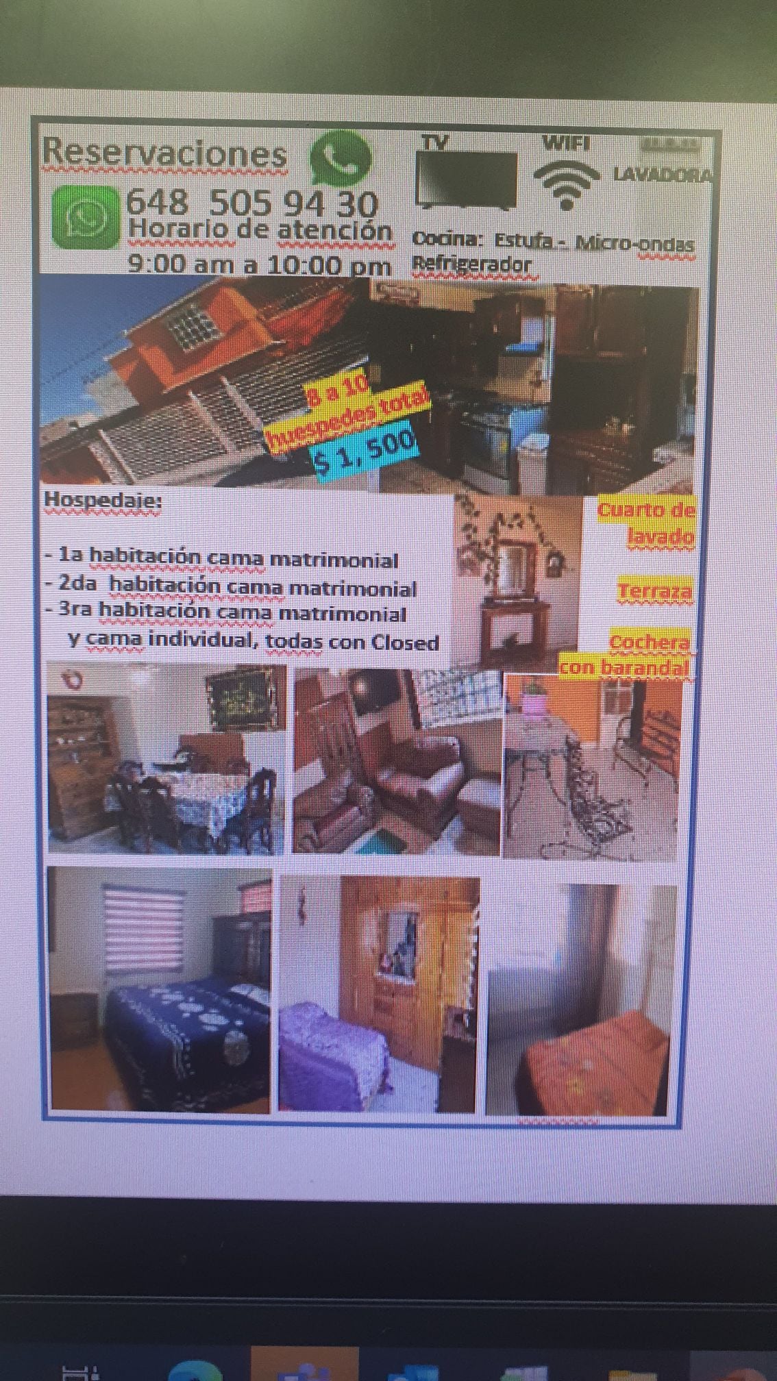 Departamento totalmente independiente en planta baja con minisplit para estancias familiares o de trabajo. Cocina Equipada.-Estufa, refrigerador, cocineta, comedor, microondas, cafetera. Recamara.-Cama matrimonial, mini Split, tv 50 pulgadas. 1 baño completo. Sala.- Un sofacama ventiladores. Patio.- patio pequeño con lavadora y tendedero. Cuenta con minisplit (frio y calor)