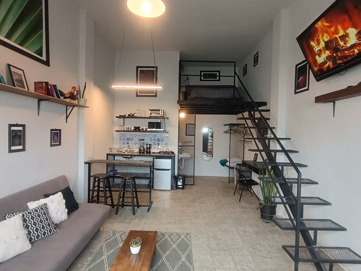 Enjoy a modern and cozy mini-loft located right next to the iconic Santa Ana Church, in the heart of Durango’s Historic Center. Perfect for couples, business travelers, or anyone looking for a stylish, comfortable, and safe stay in the best area of the city. You’ll be able to relax from the moment you arrive, with restaurants, cafés, shops, museums, and the main attractions just steps away.