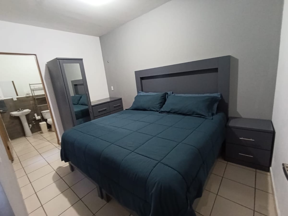 Acogedor alojamiento entero de una recámara para dos personas. Cuenta con dos pantallas, Netflix, Disny+ wifi, estacionamiento gratuito, agua caliente 24/7, utensilios de cocina, refrigerador, parrilla a gas, microondas, agua potable, dentro de un residencial privado con vigilancia las 24 horas. En el tercer piso en una de las zonas mejor ubicadas y conectadas de la ciudad. A un costado de supermercados, restaurantes y plazas comerciales. Cuenta con todo lo necesario para una excelente estancia.