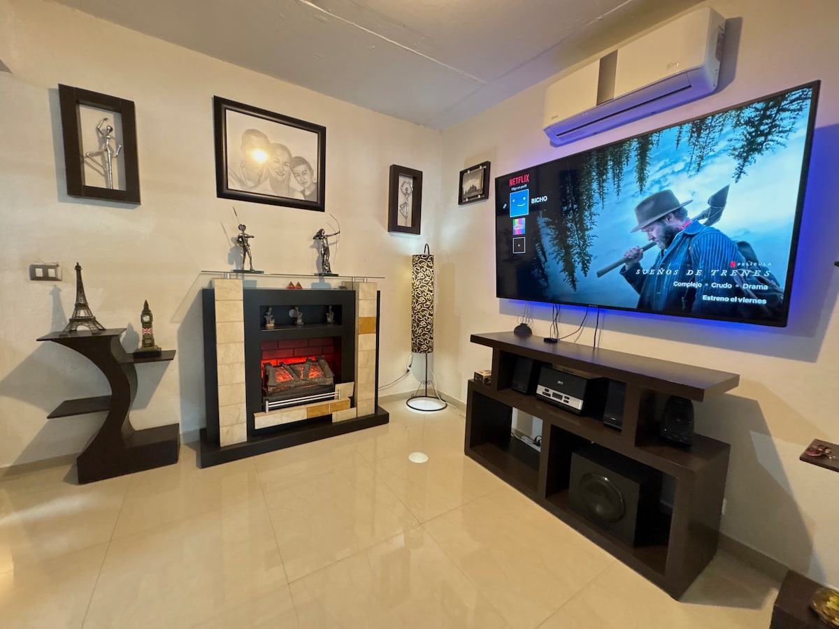¡Estamos de vuelta! Eres bienvenido a Casa Amarilla, un espacio acogedor donde puede disfrutar con tu familia. Cerca del alojamiento se encuentra el centro comercial Paseo Durango, nuestro hermoso Centro histórico, Paseo de villas del Oeste y restaurantes. Relájate con toda la familia y disfruta de la Ciudad de Durango