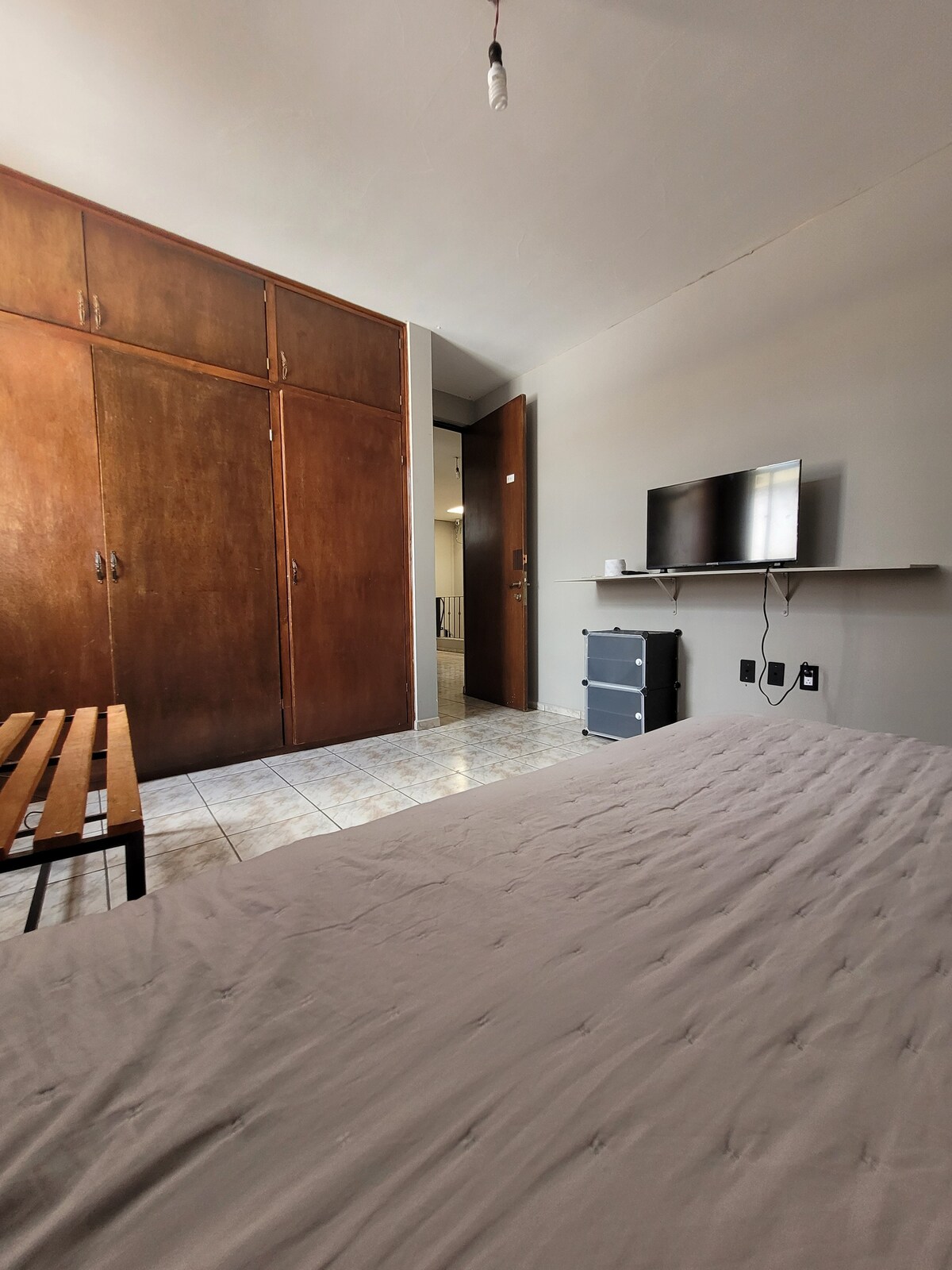 舒适的房间,有电视和衣柜