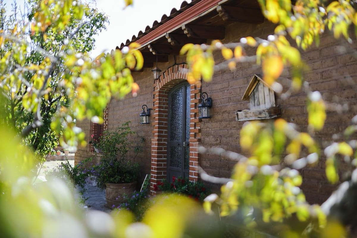 Da a tu fin de semana el toque campestre y en conexión con la naturaleza , a 15 minutos de Durango. Comodidad y privacidad, rodeado de una cortina de grandes y frescos encinos; Una construcción con espacios amplios e iluminados de adobe y madera, un área abierta de cocina integral, comedor y sala, hermosas vistas del paisaje. La Terraza es ideal para disfrutar con la familia una deliciosa comida preparada en el asador y por la noche admirar las estrellas alrededor del fogatero.