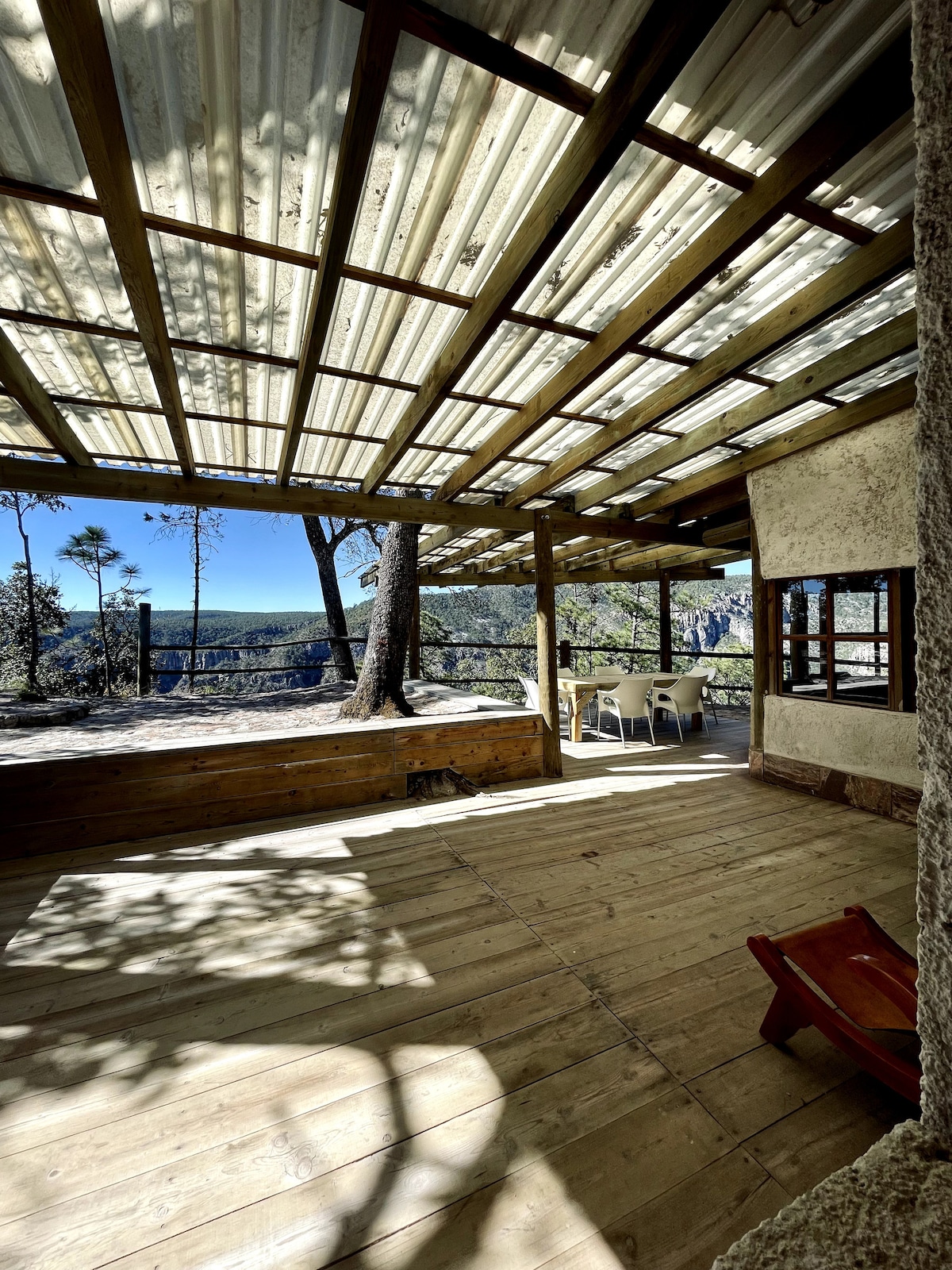 Between pine trees and fresh air, our cabin blends modern comfort with forest calm 🌿. Perfect for families or groups, it features large living areas, a stone fireplace, and a terrace overlooking the canyon. • Fully equipped kitchen & fire pit area • Safe, quiet, and ideal for family stays • Just minutes from a lake and hiking trails