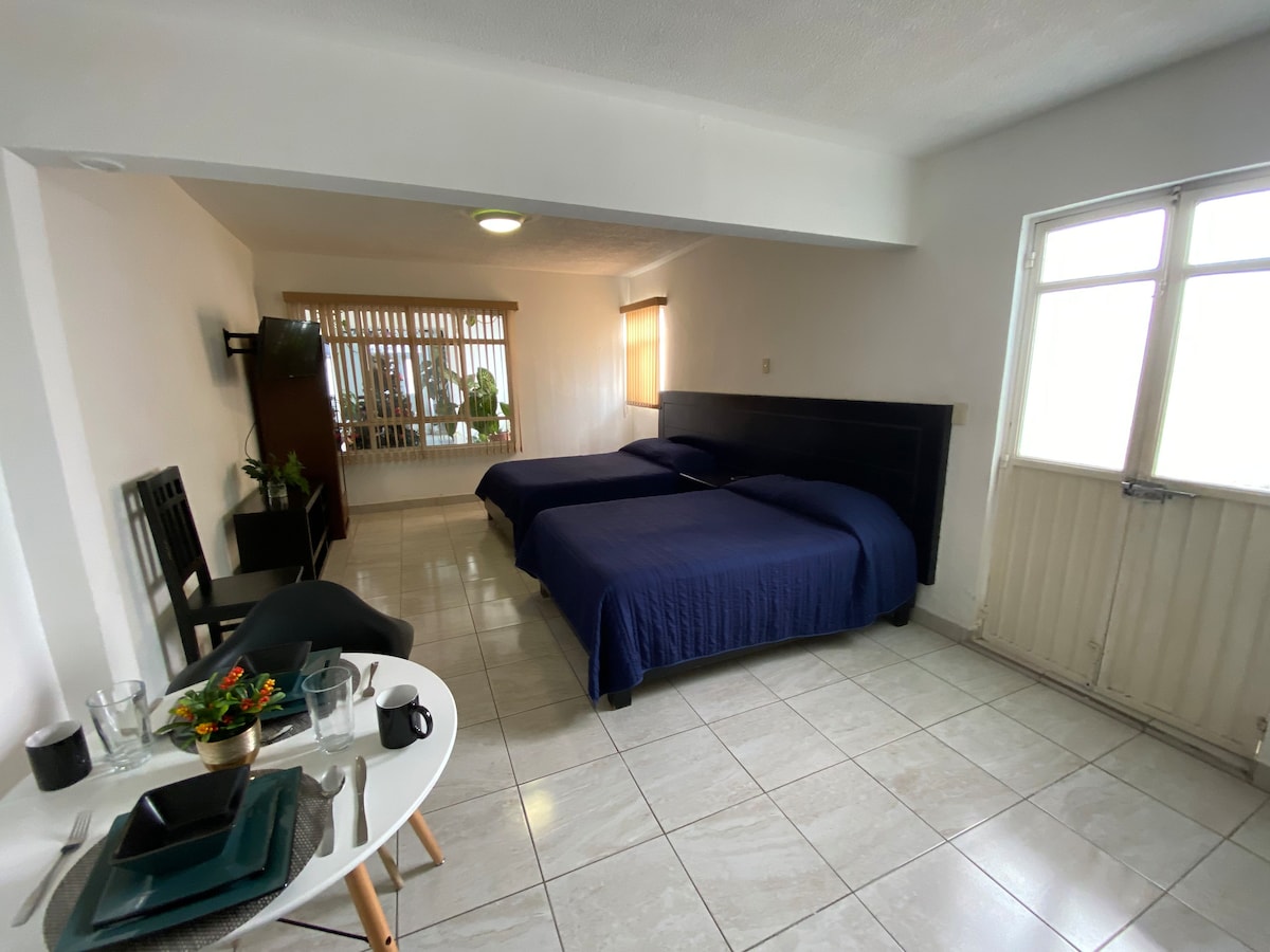 Visiting Mazatlán? Great! We have a superb place. Apartment 2 has what you need: ✔️ First-floor location 🔒 Inside a secure building, accessible by codes 🛏️ Queen bed for 2, max 4 if you rent an inflatable mattress ($300 MXN) 🚽Bathroom 🌬️ Minisplit (AC unit) 🥄 Equipped kitchen 📺 Smart TV 🚀 Internet Plus, there is a terrace with a pool, grill, and bar lounge available on the 3rd floor. 5 min. from the Golden Zone (Zona Dorada) and close to restaurants, Soriana, and Walmart.