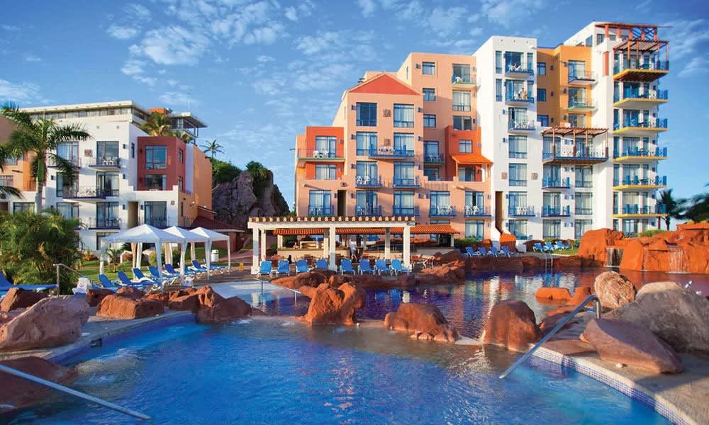 Nestled among the docks of Mazatlan’s Golden Zone marina, this Mediterranean-style resort forms a waterfront oasis that’s ideal for laid-back afternoons and seafaring adventures. Soak up some rays by two outdoor pools — one with swim-up bar, the other with slides and underwater caves. Or take the resort's water taxi to a secluded white-sand beach nearby.