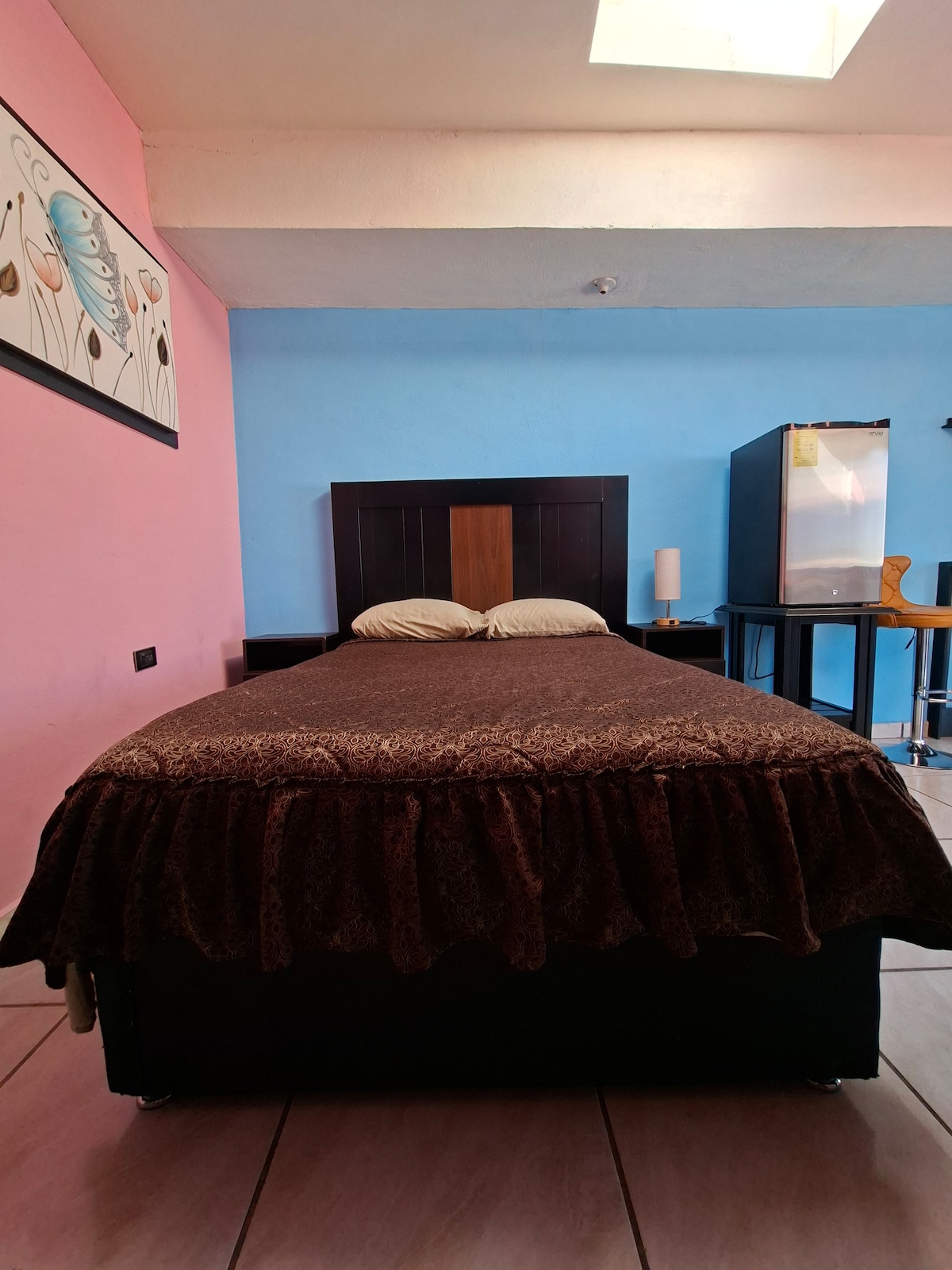 Disfruta de la sencillez de este alojamiento tranquilo en la colonia Fuentes del Sur en Torreón, cuenta con todo lo necesario para una estancia cómoda. Entrada independiente, baño dentro de la habitación, frigobar y pequeña barra de cocina.