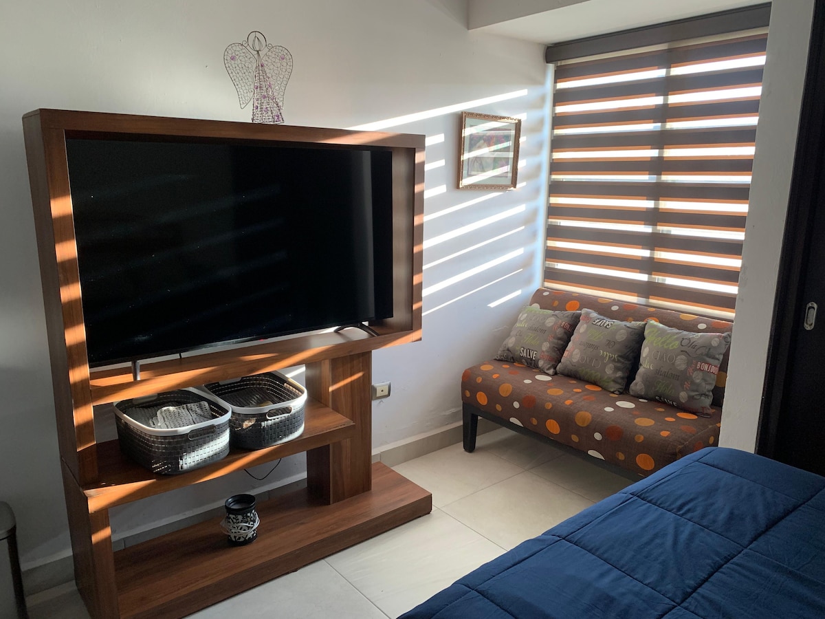 ⚠️ Nuestro Airbnb es un Departamento PRIVADO con UNA RECÁMARA con MiniSplit para UNA PAREJA cuenta con: -Cine en habitación y Alexa con Spotify Premium -TV 55' en sala con Chromecast y PS4 🎮 -🎬 Netflix, HBO, Disney+, ClaroVideo, por nuestra cuenta. -Estacionamiento un cajón exclusivo NO TECHADO 🏁 -NO FACTURAMOS -Aeropuerto a 5 min | Central de Autobuses a 5 min -Hospitales a 7 min -Plazas Comerciales, GYM y Restaurantes 🍴 a 3 min -Oxxo y Farmacia en esquina