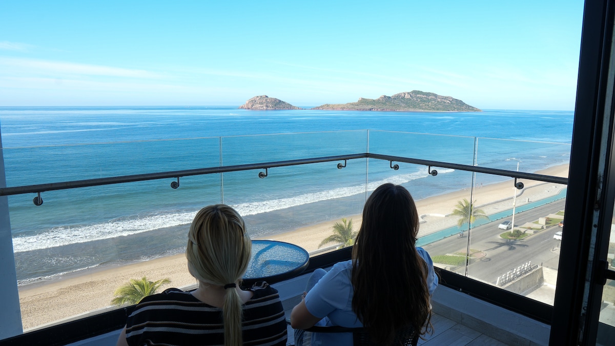 Bienvenidos a mi departamento en el piso 13 con vistas únicas del Malecón: 🌊 Vistas espectaculares al mar 🛏 2 recámaras con camas King Size 🏊♂️ Alberca climatizada en el piso 3 💪 Gimnasio y sauna 🚗 Estacionamiento gratis y seguridad privada 24hrs 🍽 Cocina equipada y balcón privado 🏖 Frente a la playa 🏙 Ubicación perfecta para explorar Mazatlán