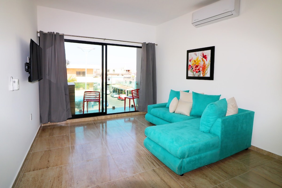 Vive una experiencia acogedora en este encantador loft, ubicado en el corazón de la Zona Dorada de Mazatlán. A sólo 5 minutos caminando de la playa, estarás rodeado de restaurantes, bares y tiendas. Disfruta tu café en la terraza privada por la mañana o relájate al atardecer con una copa y las espectaculares vistas de la Zona Dorada, la isla y el mar mientras compartes momentos inolvidables al aire libre.