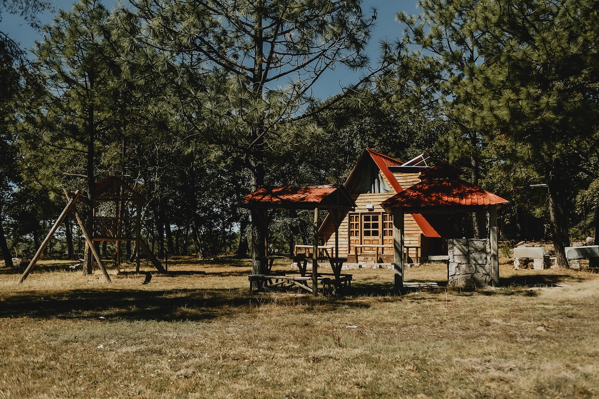 Acogedora cabaña de madera totalmente equipada frente al lago para que tengas una estancia inolvidable, cuenta con área de juegos infantiles, asador y área de fogata