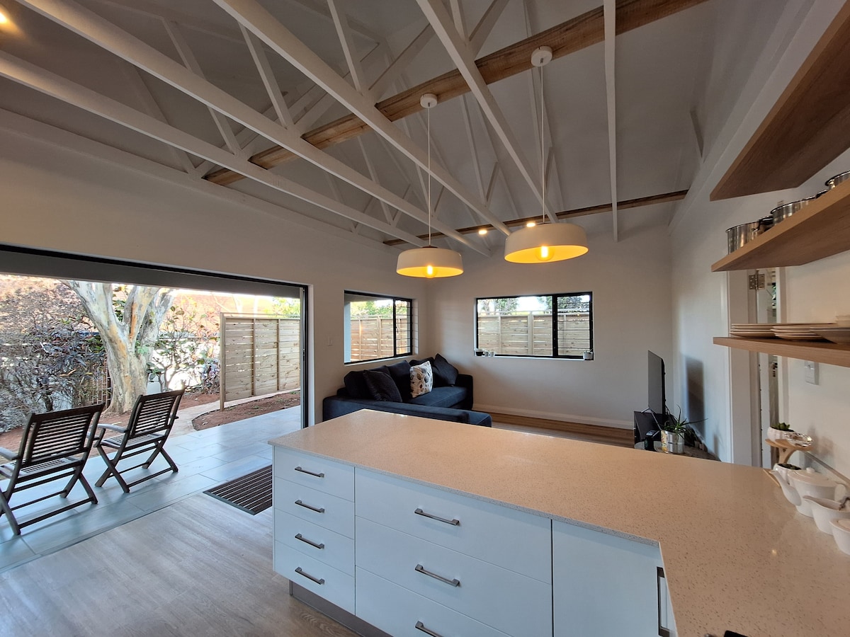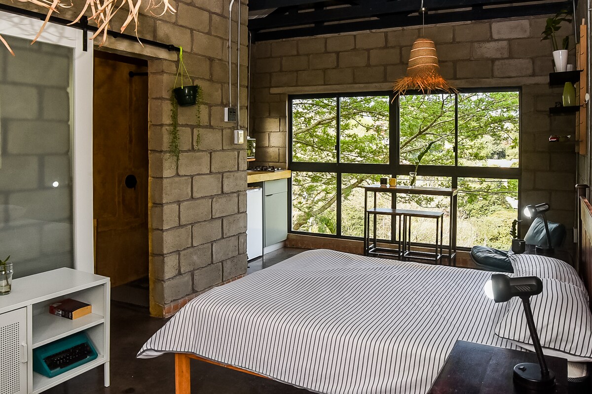 This modern, creative space is one of two hidden gems in the leafy suburb of Westville (also see Yellow Room at The Hidden Lookout) Up high in the trees, our space is a tranquil, beautiful, simple space, perfect for a break from the city, but close enough to everything to still have fun! If you are coming for business we have a fast and dependable WiFi & work station & GENERATOR if necessary.
