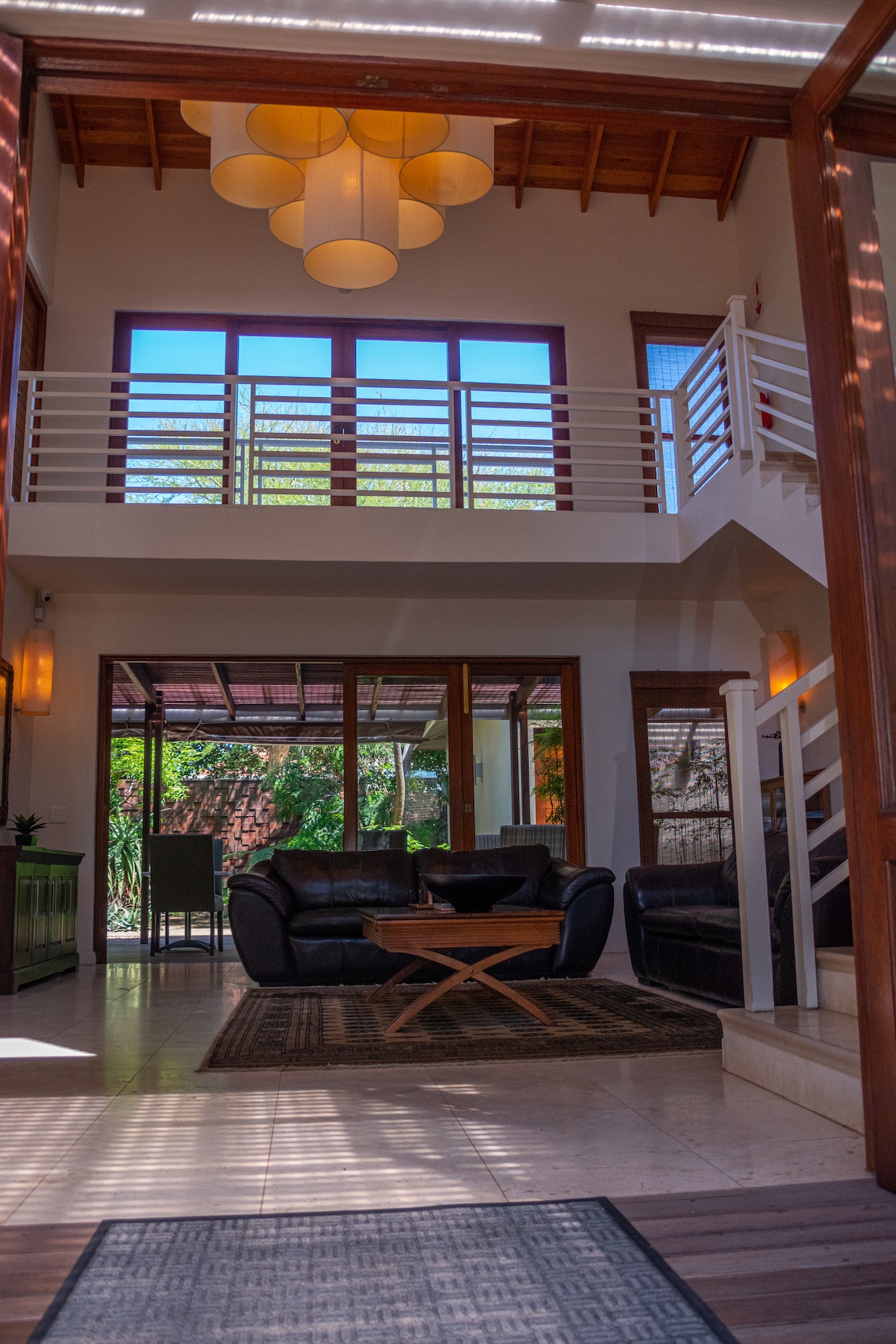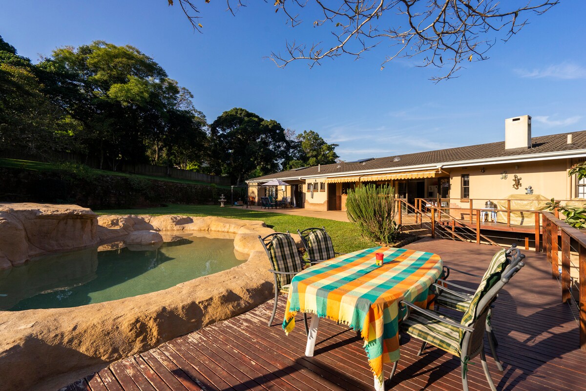 We share our family home with our guests. There are 2 queen guest bedrooms with ceiling fans & a separate shared bathroom, a pool & communal indoor & outdoor spaces. Tea & coffee is offered, but there are no facilities for cooking. There's restaurants & takeaways within walking distance. Fridge space for guest's drinks. Smoking is allowed outside & a work area is available. We are a 10 mins. drive from Umhlanga Village & Beach, 8mins. from Gateway shopping centre & 5 mins. from La Lucia Mall.