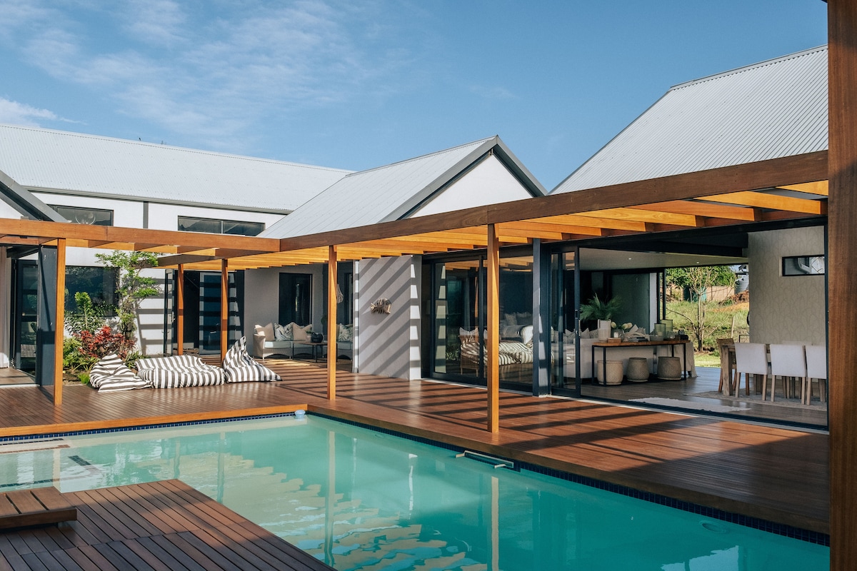 Modern Salt Rock Beach House • Ocean Views & Pool Wake up to sweeping ocean views and the sound of waves in this beautifully designed coastal home. Relax by the private pool, enjoy breezy open-plan living, and take in sunrises over the sea from the expansive glass great room. With curated décor, reliable solar power, and fast Wi-Fi, this home offers an effortless, tranquil escape just a short stroll from the beach. Ideal for families, couples or anyone craving a serene Dolphin Coast experience.