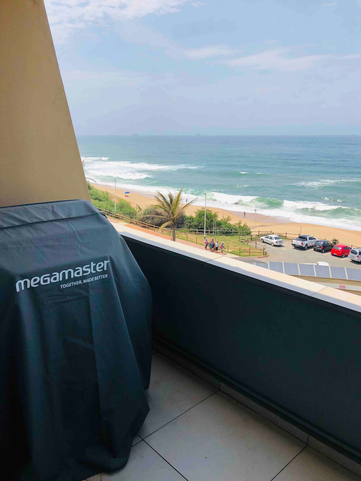 Stunning sea view Umdloti self catering apartment for long weekend/holiday rent. Sleeps 2 adults, fully kitted kitchen, dstv, aircon, 24/7 security, pool, patio sea view, Braai. Walking distance beach , nature reserve ,lagoon, shops, garage and restaurants. 8 mins from Umhlanga village, 5 mins King Shaka Airpot. Sea view and patio with gas Braai. Snorkeling swimming fishing bay safe for kids. Pet friendly too