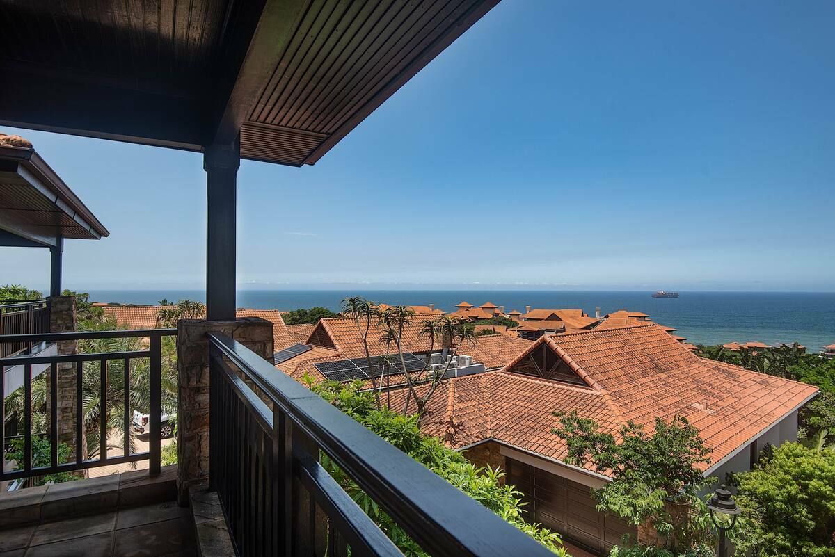 Can accommodate 8 (Max 6 adults). Modern 3 level home set on hill in Simbithi Eco Estate enjoying optimal privacy and magnificent views. This brand new home offers 4 bedrooms en-suite, large entertaining space both inside and outside the house. 10 mins drive from local shops and restaurants and 25 mins from King Shaka International Airport. The nightly rental includes a housekeeper from Monday to Friday 8am to 2pm.