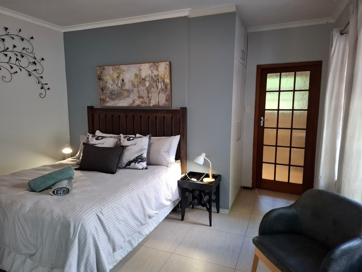 Off-street parking. Entry into premises next to garage door. Sep. entrance with security gate into guest suite which is situated at the rear of the house and is classically furnished. Large windows with natural light looking out into back garden - several species of garden birds. Microwave, fridge, kettle with tea/coffee/biscuits/milk supplied. Ample shelf and hanging space in cupboards. Modern en-suite bathroom with spacious shower. 5 minutes to shopping centre and MyCiti bus. Enjoy your stay.