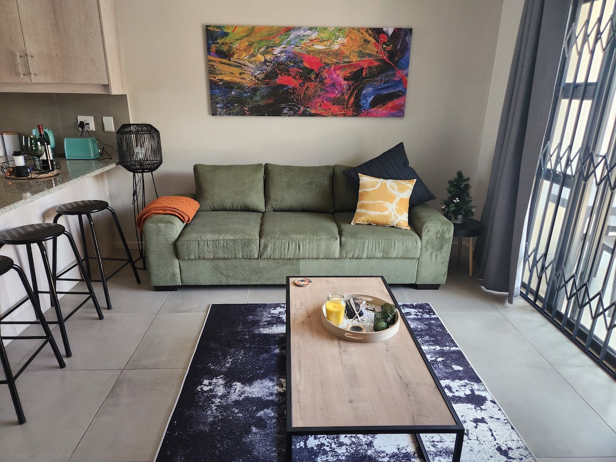 Luxury Self Catering Guest suite attached to modern private home in quiet neighbourhood, with private secure parking and private entrance. The suite has a spacious, sepatate living/dining area with full kitchen facility. The property is equipped with Solar power/battery on UPS, so the SA phenomenon of load shedding/ power outages have little to no impact on our guests. There's also rainwater storage, filtered and piped to the house in the event of municipal water supply issues.