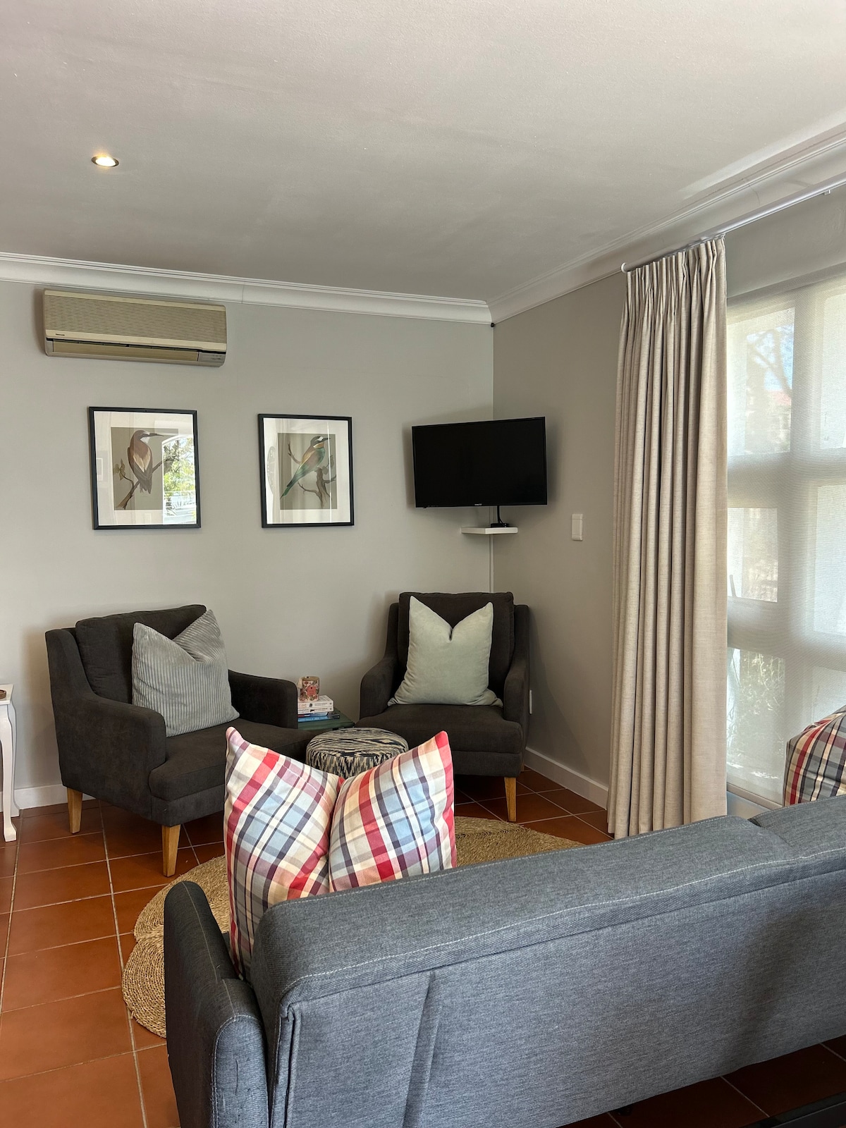 A serene stay in this centrally located 1 bed apartment. Seperate entrance, patio overlooking a tranquil garden, well equipped kitchen, cosy lounge with workspace & separate bathroom. The bedroom boasts a king-size, extra-length bed with luxury linen. Enjoy amenities like a Smart TV, inverter for load-shedding & indoor/outdoor braai options. The patio & secure parking area are shared with the owner. Shops, cafés, and local attractions are within walking distance. Two friendly dogs await you.