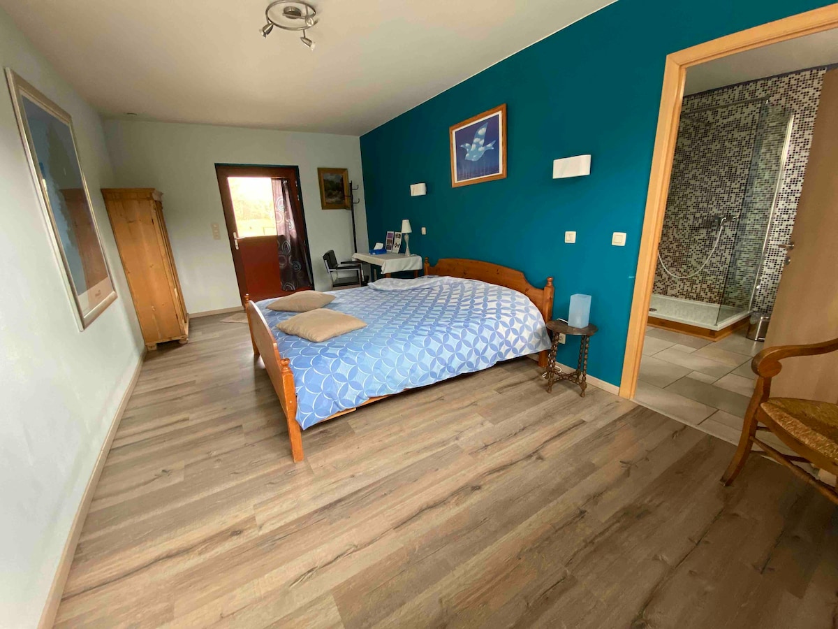 Chambre confortable 2 personnes et poss. 1 bébé dans maison en pierres du pays. Calme, 1er étage, déco bois, vue sur jardin, coin salon et salle de bain privée douche ttes commodités. Gratuit : wifi, thé, café, peignoirs, sèche cheveux. Cintres. Petit déjeuner inclus produits bio ou locaux. Four micro onde et vaisselle. Campagne à proximité de Bastogne et Houffalize, E25, sentiers pédestres et Vtt, kayak, ski, restaurants. Verre de bienvenue. Parking, garage moto ou vélo. Pas d'animaux.