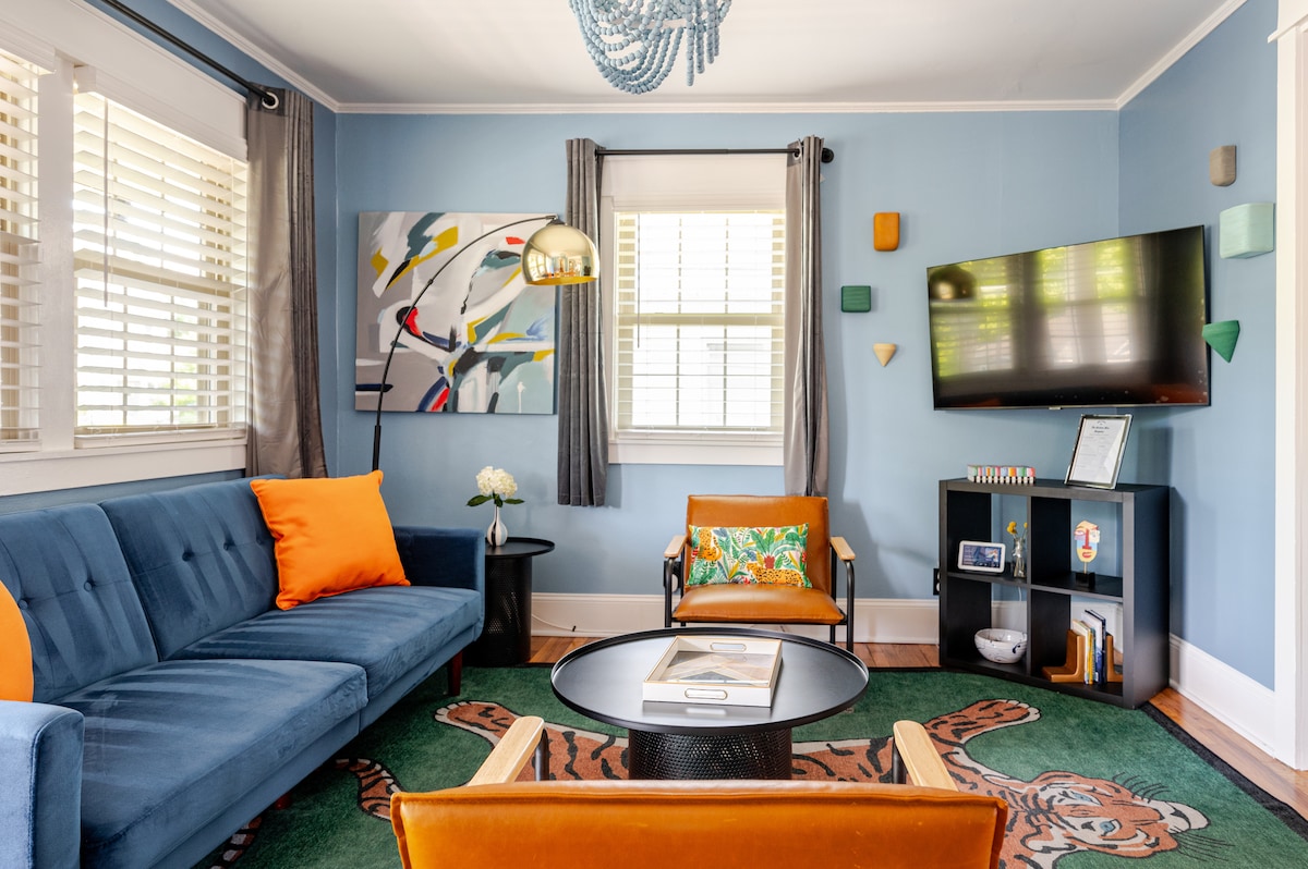 Stay in a renovated, simplified Queen Anne-style home from 1915, located on the edge of Durham's Cleveland Holloway neighborhood with easy access to downtown's farmers market, restaurants, and bars. A portion of your stay goes to Airbnb.org to support hosting refugees. Relax in a spacious kitchen with Little Waves coffee, high ceilings, a beautiful live edge slab table, and a luxurious clawfoot tub shower. Please note, there is only one bathroom located in the master bedroom.