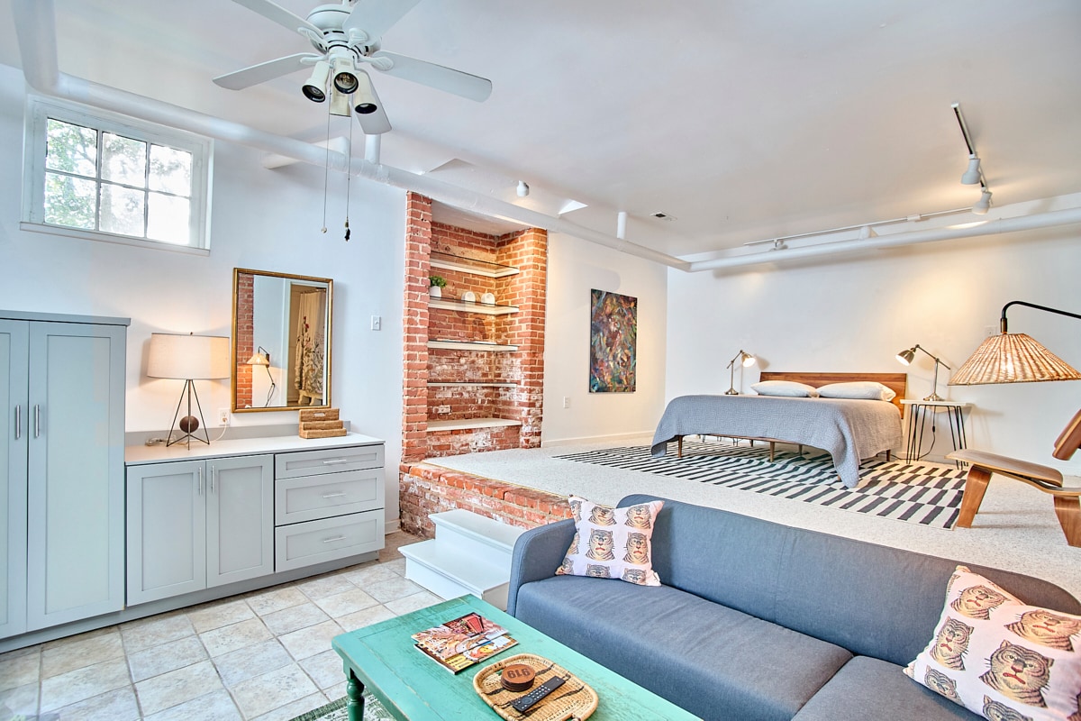 Compact studio steps from Downtown Durham with a private entry and free street parking! Well-stocked kitchenette and bathroom. Close to Duke and walkable to all of Downtown and more: ✦ 7+ coffee shops ✦ 10+ breweries ✦ Plenty of restaurants + bars ✦ DPAC, Durham Bulls + Durham Convention Center ✦ Central Park, Farmer's Market + Durham Food Hall ✦ Ellerbe Creek + American Tobacco Trails We live in the townhouse above the studio and are happy to assist with anything you might need.