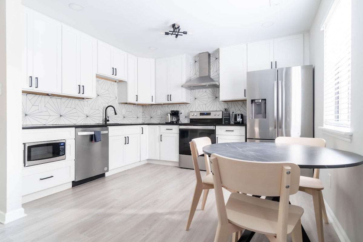 Spotless new-build in Trinity Park with 2 ensuite bedrooms, fast Wi-Fi, and TVs in every room. Guests love the thoughtful touches, plush bedding, and fully stocked kitchen. Driveway parking for 2 cars plus EV charger. Just a 5-minute drive to Duke University, Duke Hospital, Ninth Street dining, and downtown Durham. Quiet, safe neighborhood with washer/dryer, blackout curtains, and white noise machines for restful stays—your home away from home.